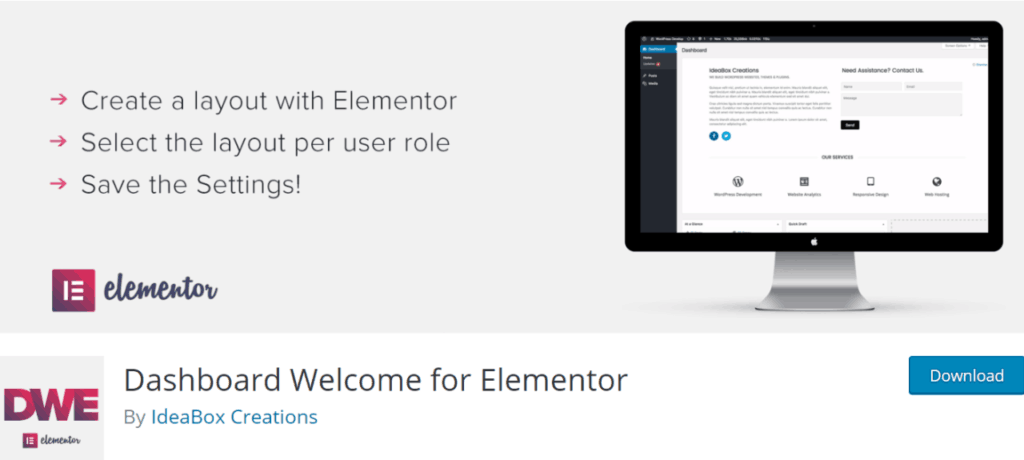 Dashboard Welcome to Elementor lets you fully customize the WordPress welcome panel using Elementor. You can add content and designs including headings, contact information, video, and images to the admin dashboard.